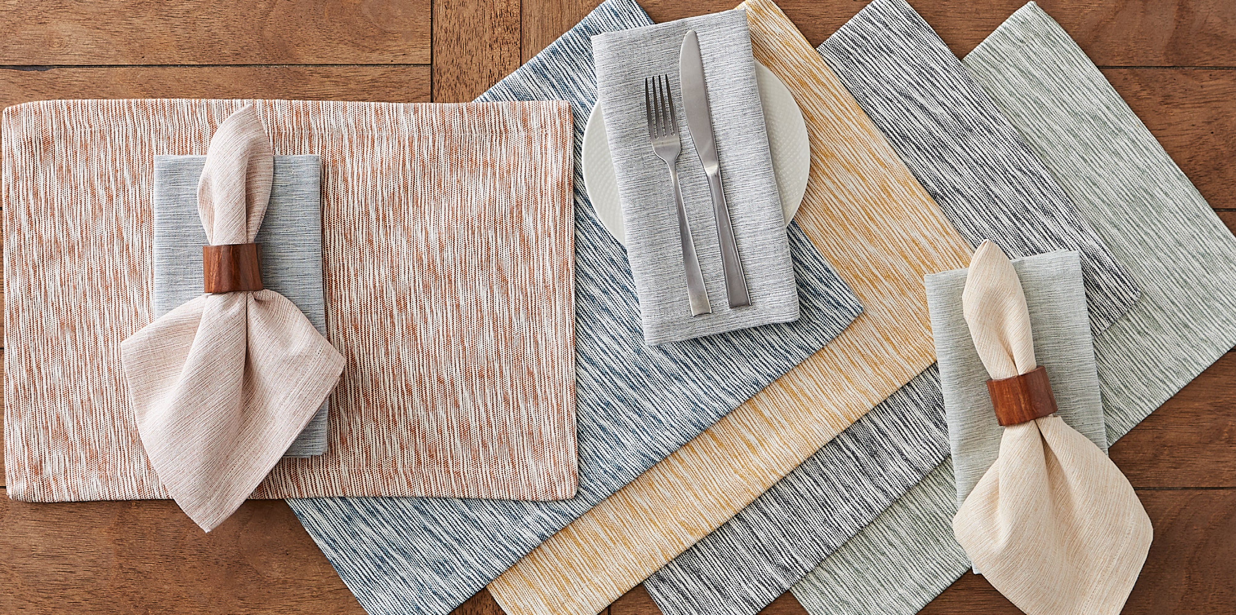 20" x 20" | 100% Cotton | Space-dyed slub yarn | 1" turned hem with mitered corners