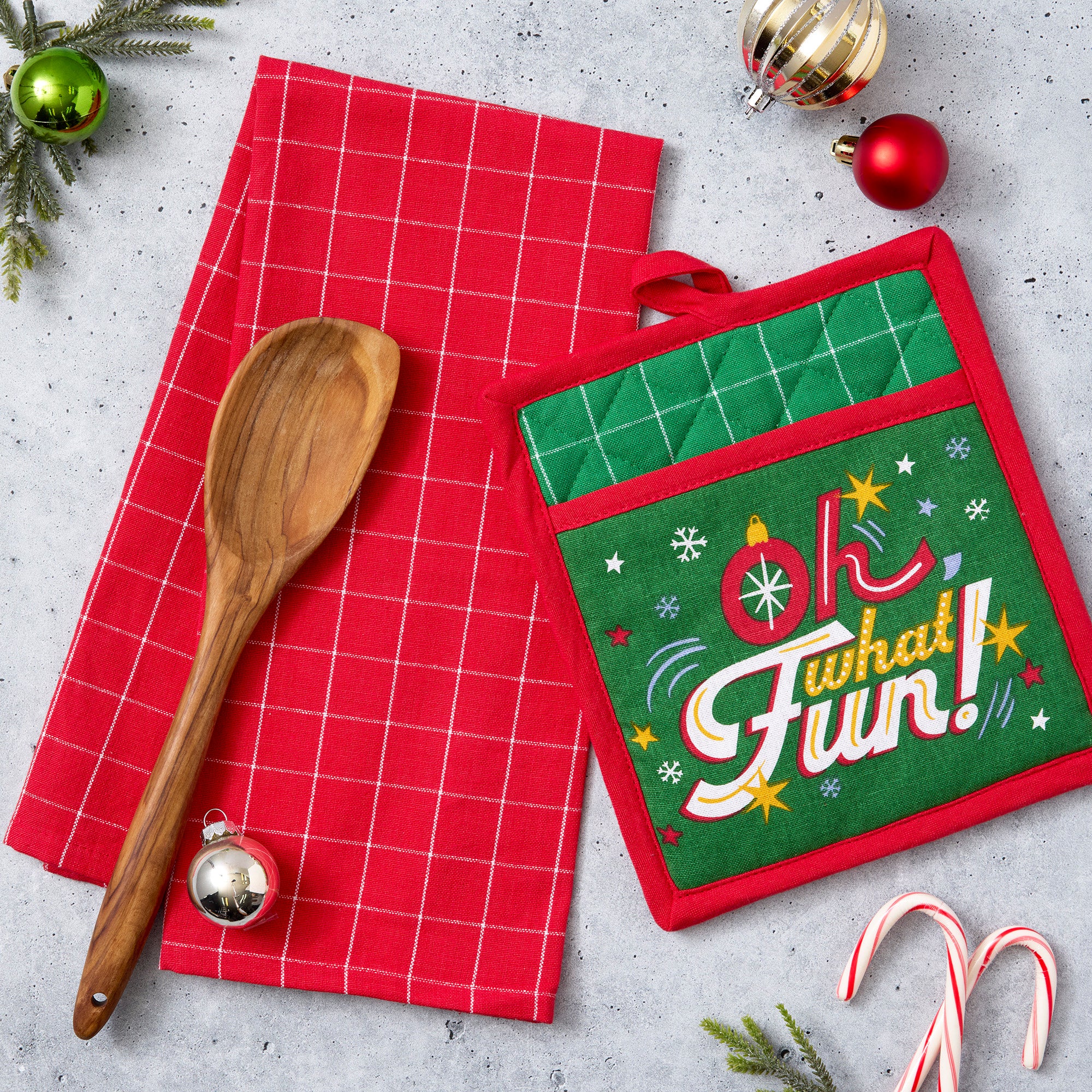 • A charming and practical holiday duo—perfect for protecting hands while cooking and baking, or gifting to hosts, neighbors, and festive home chefs