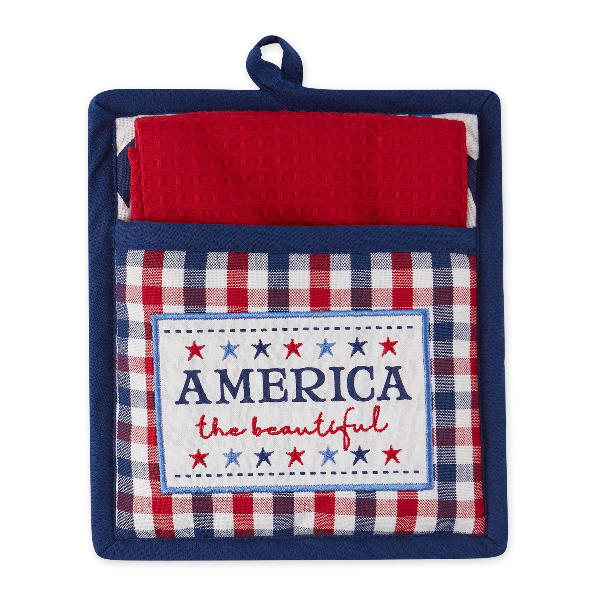 Set includes 1 waffle dishtowel folded inside an embellished potholder | 100% Cotton | Machine wash cold separately • Gentle cycle • Tumble dry low • Low iron • Wash separately before use