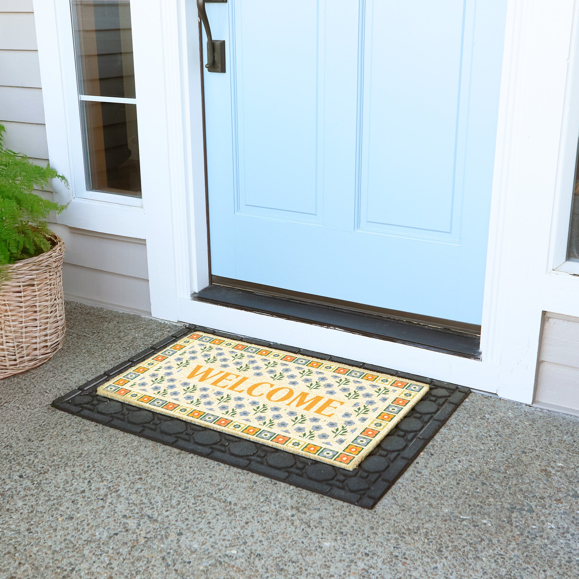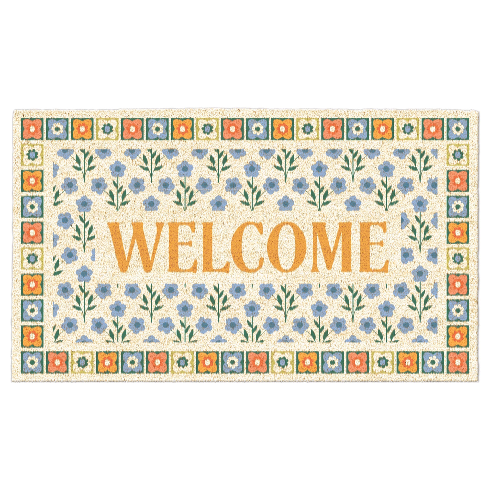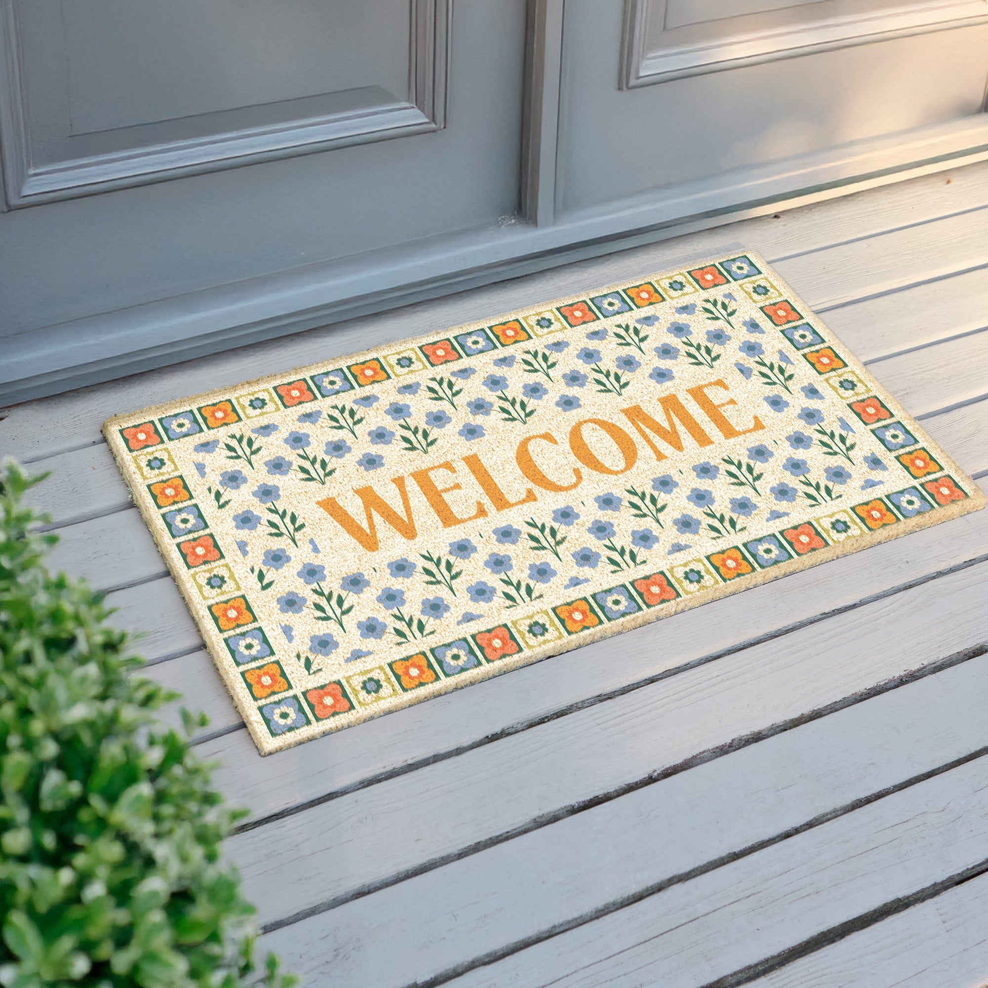 Folk Flowers Welcome Doormat