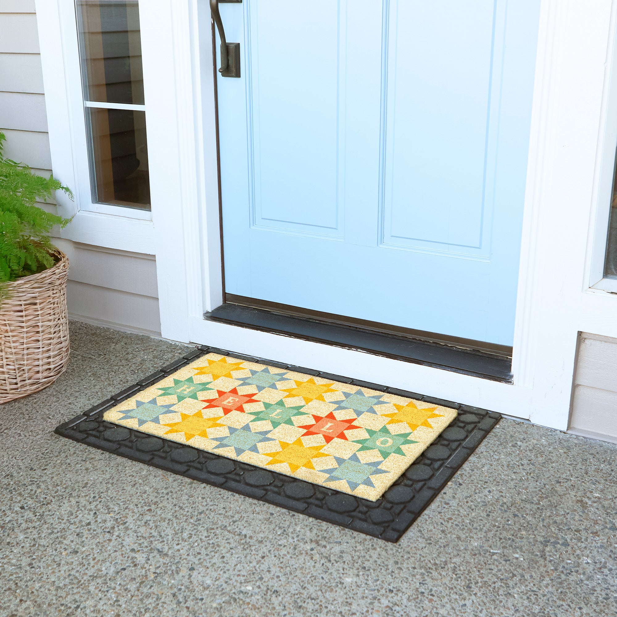 - Natural coir fibers feature a sturdy, textured surface that helps brush dirt from shoes and keep debris outside.