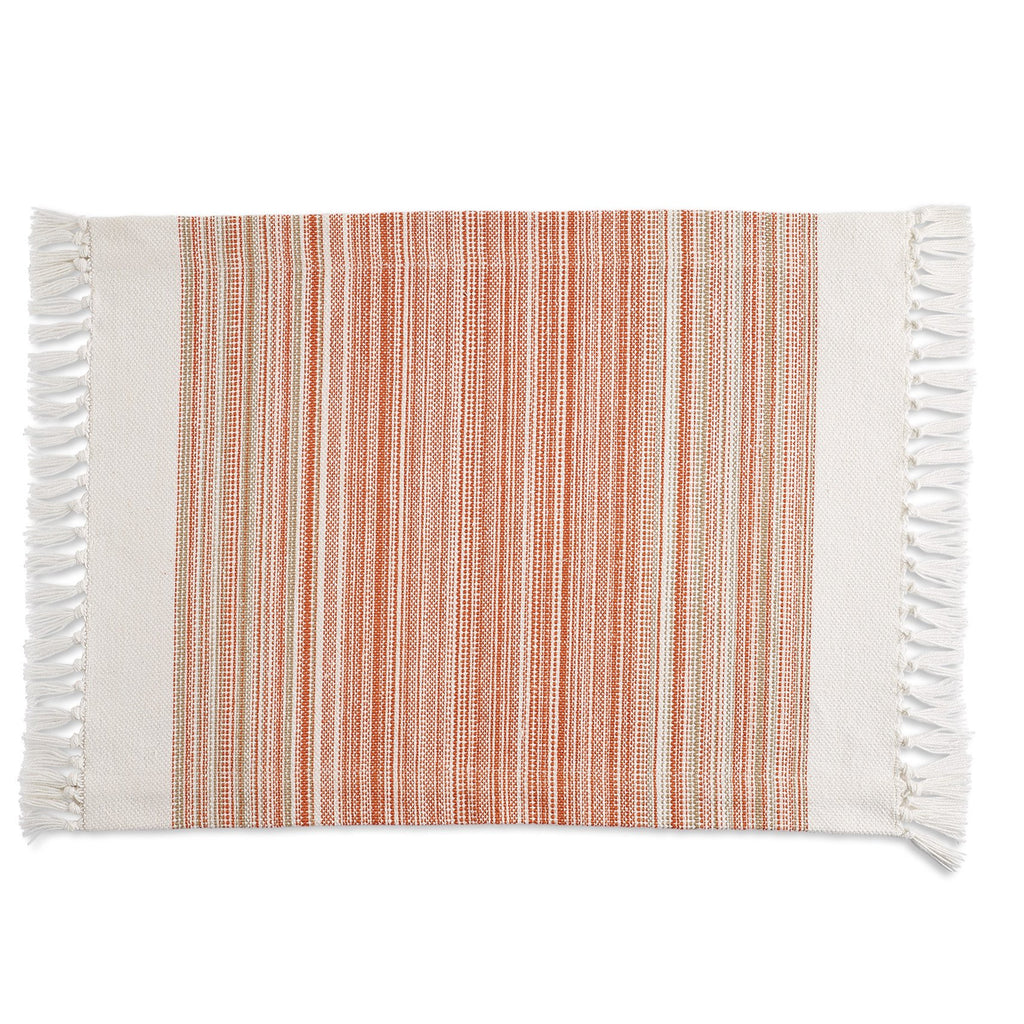 Pimento Striped Fringe Placemat measures 13 x 20". 100% Cotton.